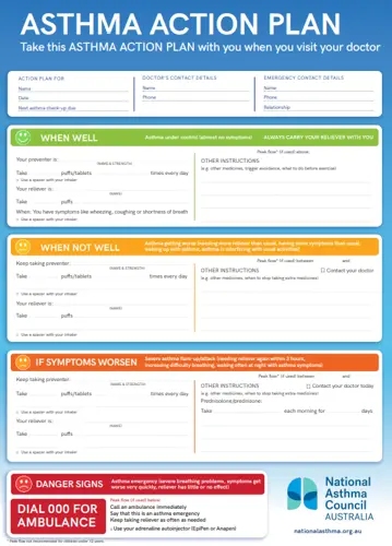 National Asthma Council Australia. Asthma Action Plans. https://www.nationalasthma.org.au/health-professionals/asthma-action-plans